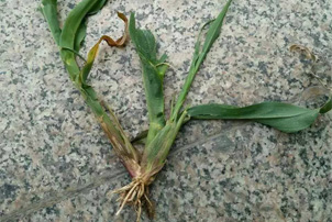 玉米莖腐病,也叫莖基腐病,是指發(fā)生在玉米莖或莖基部腐爛,并導(dǎo)致全株迅速枯死癥狀的一類病害,現(xiàn)已查明它是由多種真菌和細菌單獨或復(fù)合侵染引起的。細菌性莖腐病多發(fā)生在10葉左右,在大量大量降雨,造成高溫高濕環(huán)境,極有利于莖腐病發(fā)生蔓延,造成植株倒伏,下部莖節(jié)腐爛,從而對玉米危害。
